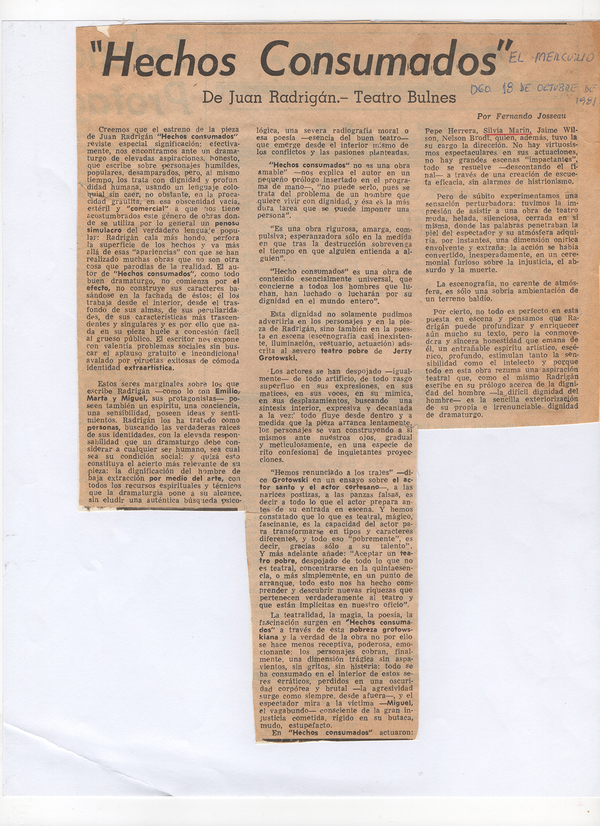 Hechos Consumados, El Mercurio, 1981